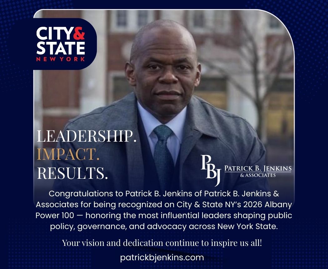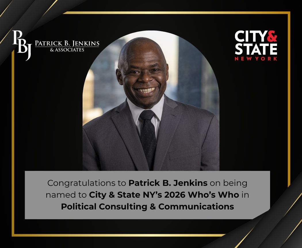 Congratulations to Patrick B. Jenkins on being named to City & State NY’s 2026 Who’s Who in Political Consulting & Communications. Leadership. Strategy. Impact. Well deserved. Read More » January 22, 2026