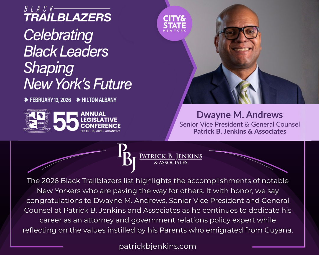 Proud to congratulate Dwayne M. Andrews, Senior Vice President and General Counsel at Patrick B. Jenkins & Associates, for being named one of City & State’s 2025 Unsung Heroes — honoring New Yorkers who make powerful impacts behind the scenes. Read More » November 21, 2025